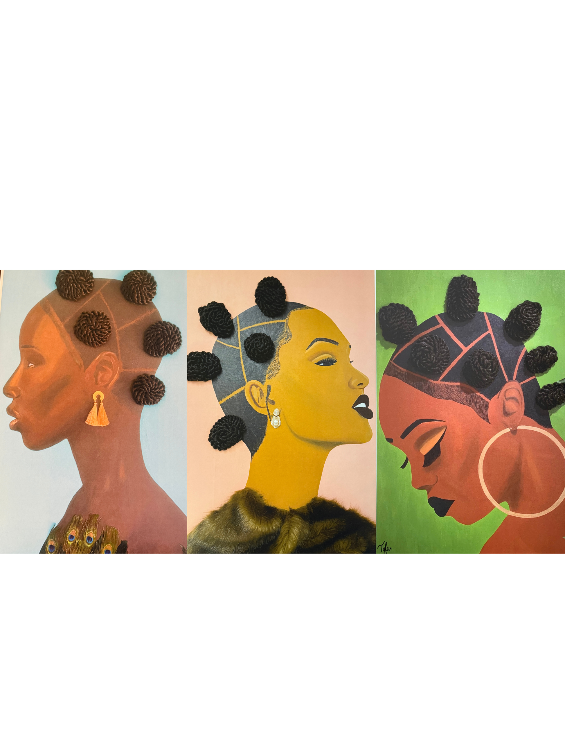 3 12X18 2D prints of the Bantu knot collection. This print does not have real hair added.