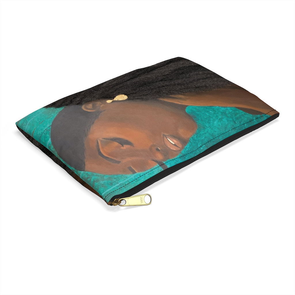 Our flat pouches vary from small to large and can be used for pretty much anything. They make excellent pencil cases and cosmetic travel bags. They are constructed of a durable material with a zipper closure. This item does not have hair added.